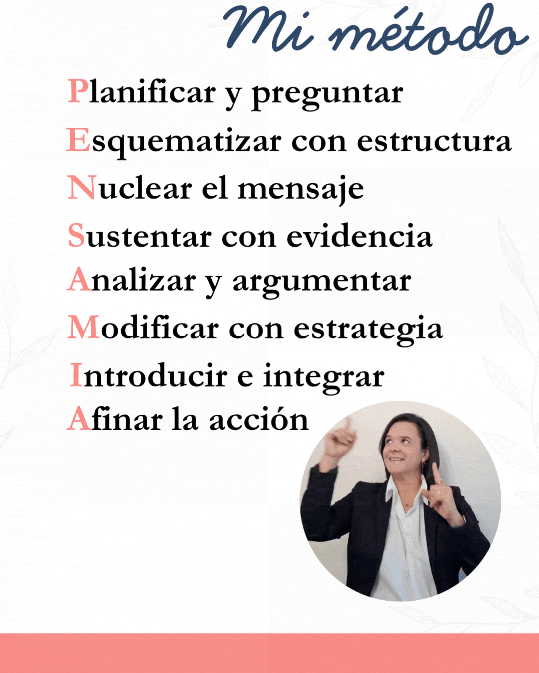 El método PENSAMIA es el que uso para ayudar a otras personas a desbloquear su escritura. Funciona porque toma en consideración todo el proceso de escritura. Se enfoca el trabajo en 8 pasos esenciales.